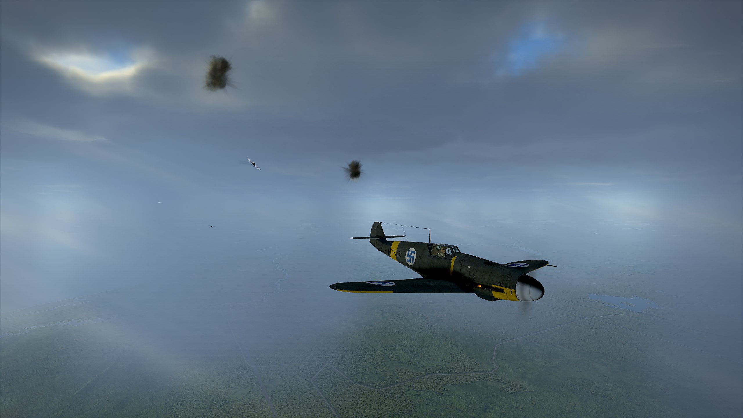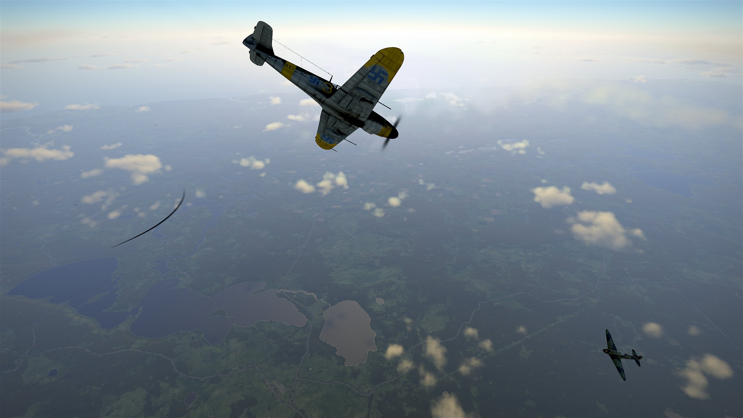Start proti ruskému náletu na Pölläkkälä. Poté, co jsme málem napadli dva vlastní junkersy, jsme nedaleko Pölläkkälä našli skupinu bostonů doprovázenou laggy. Po několika útocích z převýšení jsme sestřelili dva bostony a tři stíhačky. Jeden z mersu byl poškozen obrannou palbou, a tak jsme se vrátili zpět. Osamělý pilot na hurricane ještě zbytek bostonů pronásledoval až nad Leningrad, ale žádný se mu už sestřelit nepodařilo.