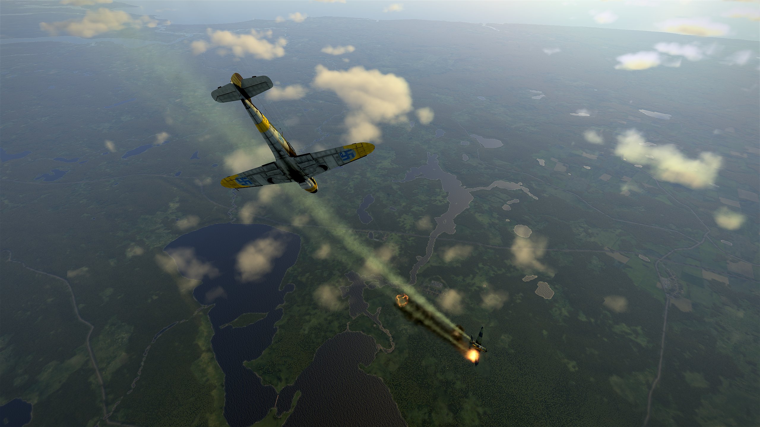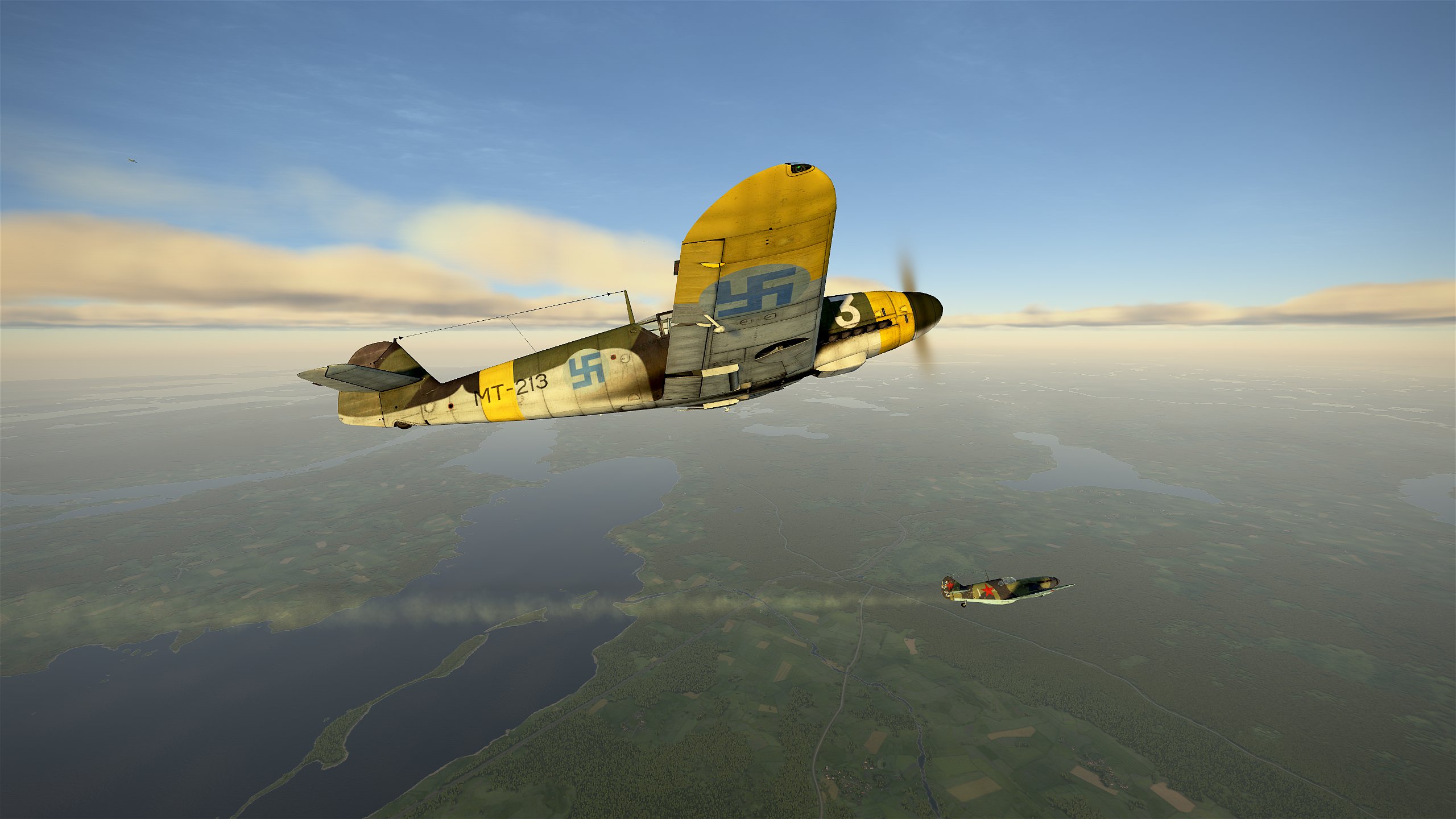 Opět jsme doprovázeli průzkumný junkers, který si potřeboval nafotit několik míst v okolí Leningradu, hlavně město Puškin, pojmenované asi po slavném ruském básníkovi. Dnes jsme měli štěstí, protože jsme sice na Rusy narazili hned dvakrát, ale pokaždé jsme je uviděli dřív, než oni nás. Nejprve se objevila dvojice LaGG-5, jejichž piloti šli bez váhání do čelního útoku. Bylo to dost nepříjemné, ale vyhnuli jsme se a naše Bf 109 získaly po několika obratech navrch. Oba Rusy jsme sestřelili během minuty. Po několika dalších minutách jsme narazili na další dvojici letadel, tentokrát jaky. Tyto stroje manévrovaly velice ostře a jejich piloti šli okamžitě po nás. Špatně jsme si je rozdělili, takže na jednoho jaka šly dva naše messerschmitty. To vedlo ke katastrofě - ruský jak jsme sice sestřelili, ale jeho číslo vzápětí bez váhání sestřelilo jednoho z našich, který musel skákat. Ruský Jak-9 zmizel v oblačnosti a už jsme ho neviděli.