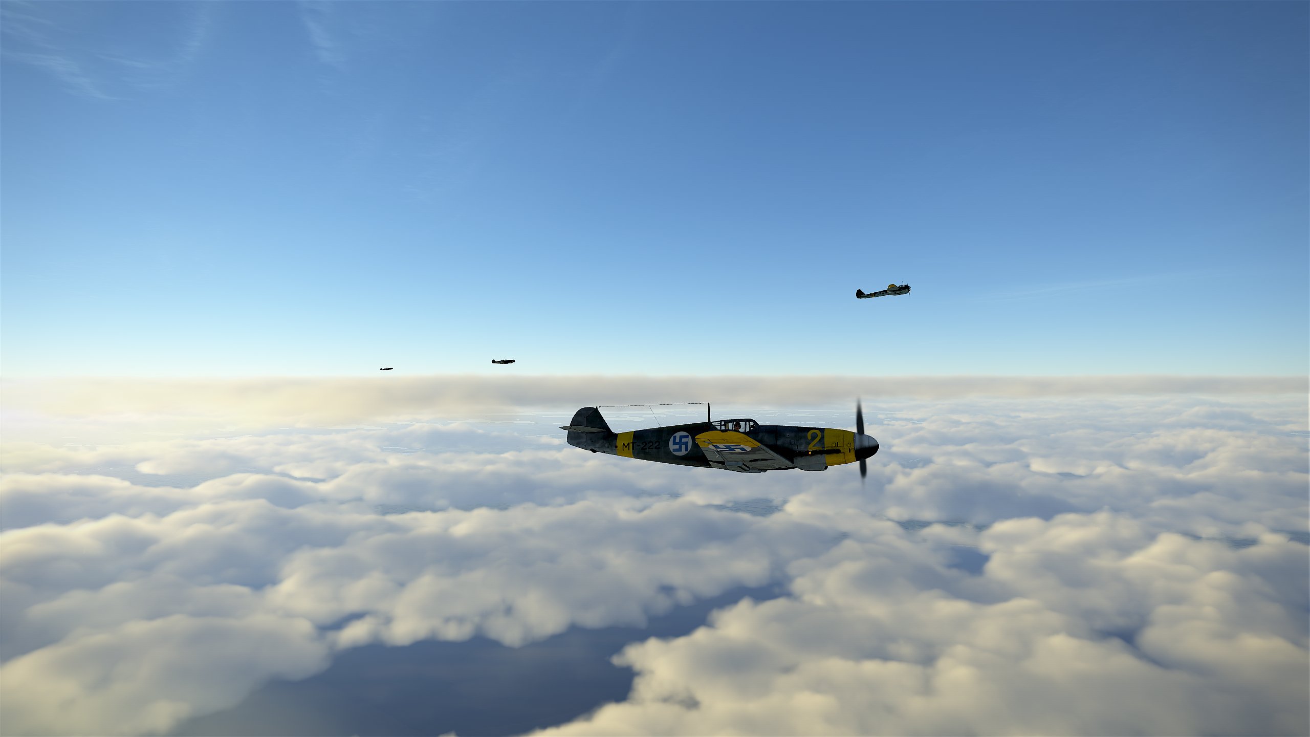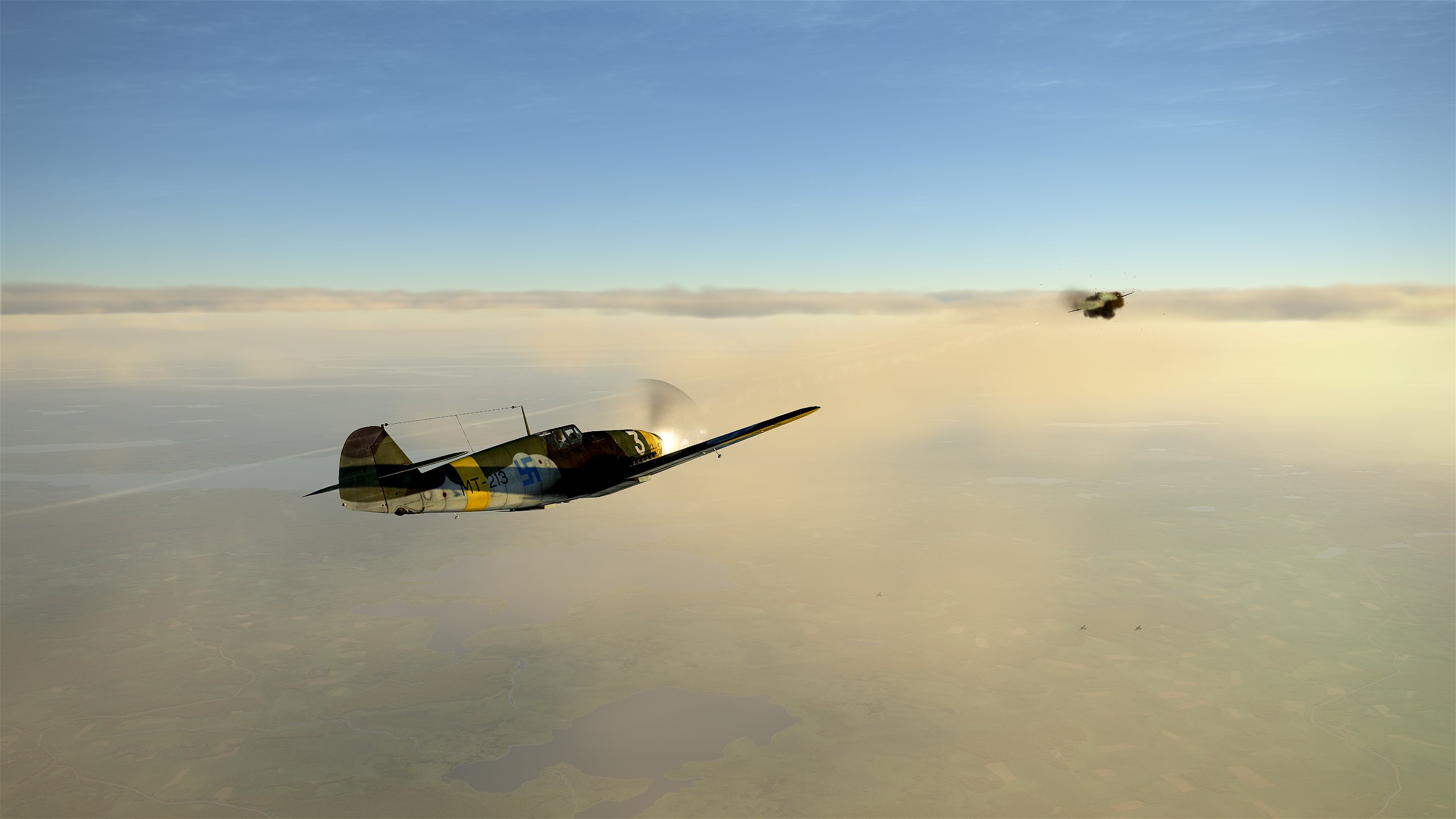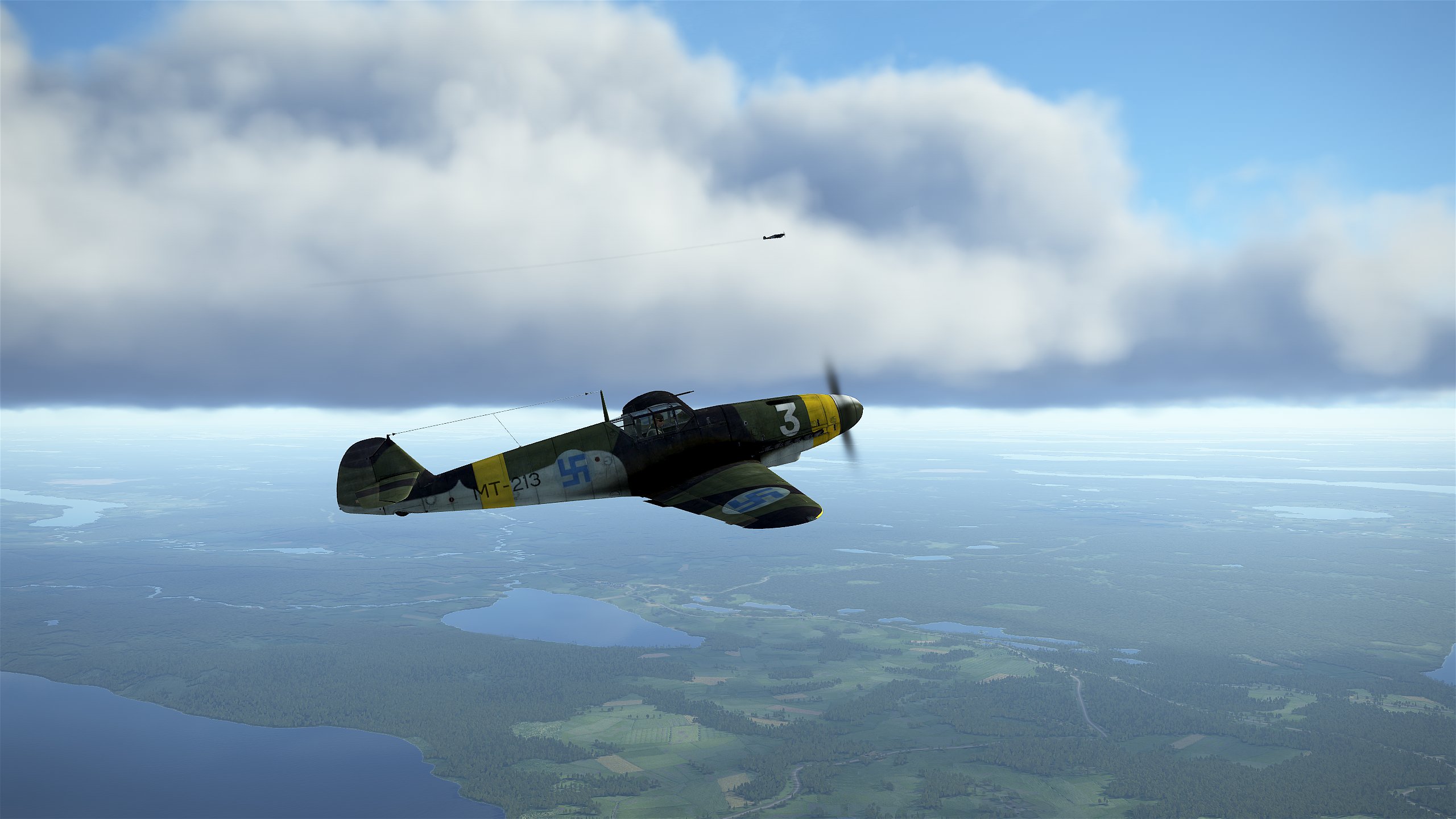 Dnes jsou to přesně dva roky, co začala Pokračovací válka. Leningrad je stále v obležení, ale fronta se prakticky nehýbe. Starost nám začínají dělat nové typy ruských stíhaček Jak a La, které se svými výkony vyrovnají našim mersu. Naštěstí úroveň ruských pilotů je stále dost nízká. Patrola východně od Leningradu nás přivedla až nad Ladožské jezero. Horní vrstva oblačnosti byla asi kilometr pod námi, mraky zalité sluncem poskytovaly nádhernou podívanou. Nenechali jsme se ale úplně unést a pečlivě jsme sledovali okolí. Kromě občasných pozdravů od ruského flaku jsme ale neviděli nic. Když jsme se po klesání v nízkém letu přihnali k letišti, uviděli jsme kousek opodál dva kontakty. Dal jsem svému mersu plný plyn a začali jsme je dotahovat. Podle siluety to byly migy. Rusové nás ale spatřili, přidali taky a klidně nám odstoupali do mraků. Proletěli jsme mraky a pátrali po nich, ale nenašli jsme je. Byl jsem vzteky bez sebe. Po přistání prvního messerschmittu začal jeho pilot hlásit do rádia, že po něm někdo střílí z lesa. A opravdu, hlídky na letišti vzápětí zajaly posádku sestřeleného Il-2, která se skrývala mezi stromy na okraji letiště.
